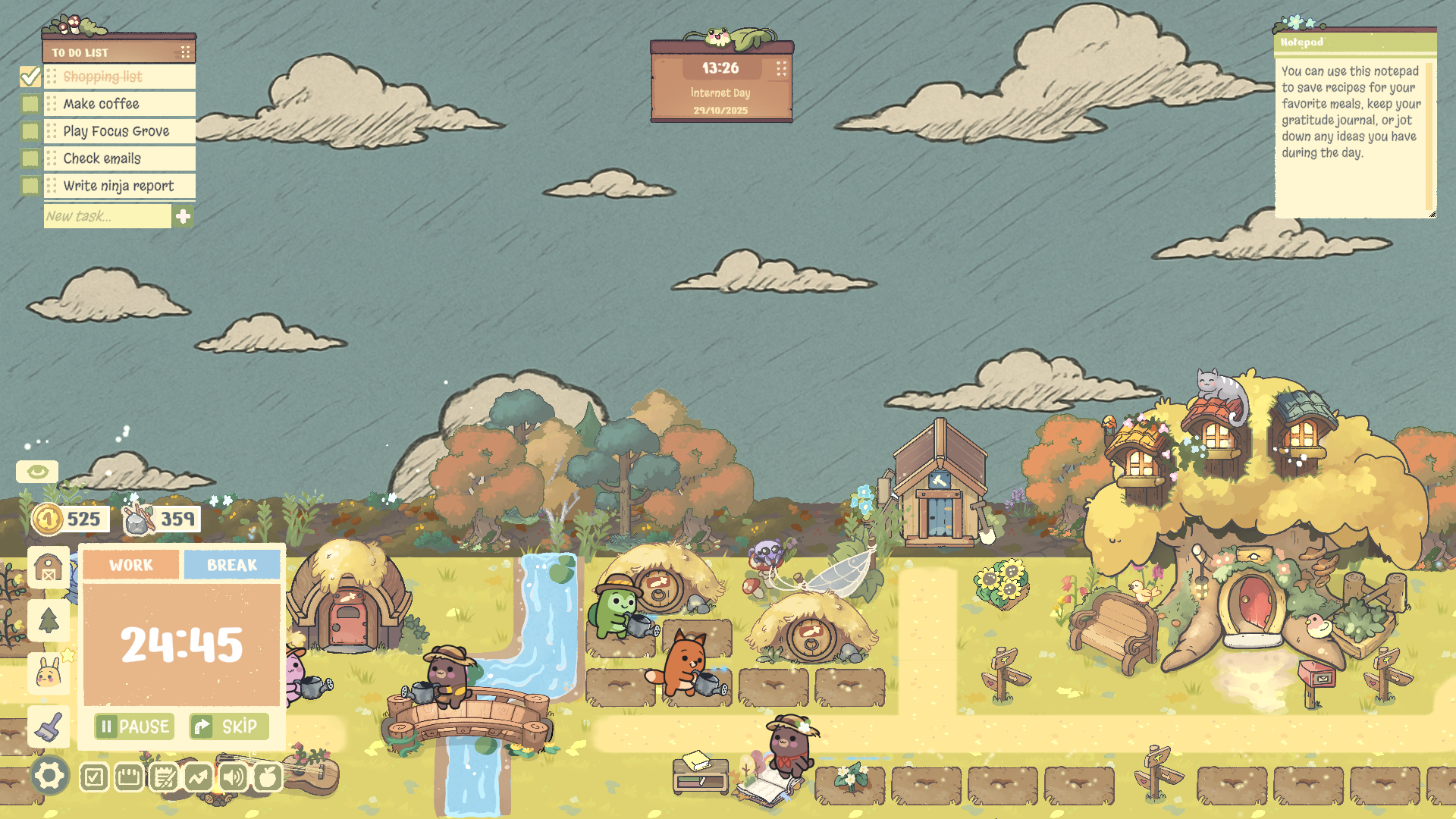 - Combine real productivity tools with the calm joy of a cozy idle game.